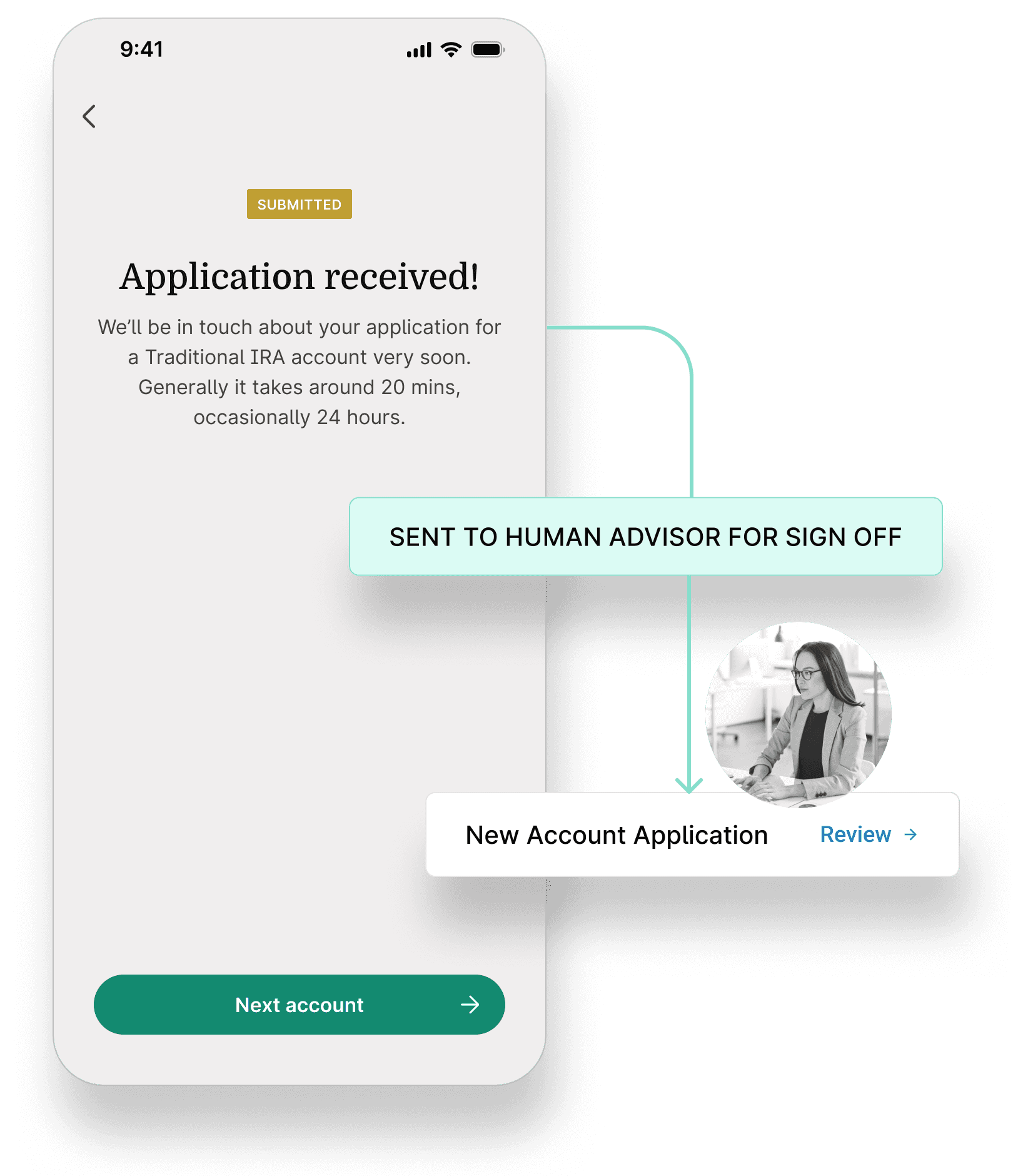 Finley operates within a supervised advisory model, where a licensed human advisor signs off before any regulated actions and remains accountable for outcomes. Oversight was designed directly into the flow, with structured review artefacts generated when regulated decisions are reached and before any actions. This allows advisors to review, approve, and remain responsible without needing to be present in the live conversation.
